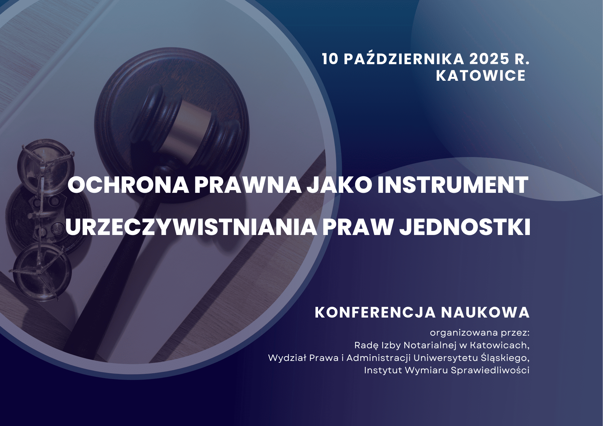 Rada Izby Notarialnej w Katowicach wspólnie z Wydziałem Prawa i Administracji Uniwersytetu Śląskiego oraz Instytutem Wymiaru Sprawiedliwości organizują konferencję naukową pt. “Ochrona prawna jako instrument urzeczywistniania praw jednostki”.